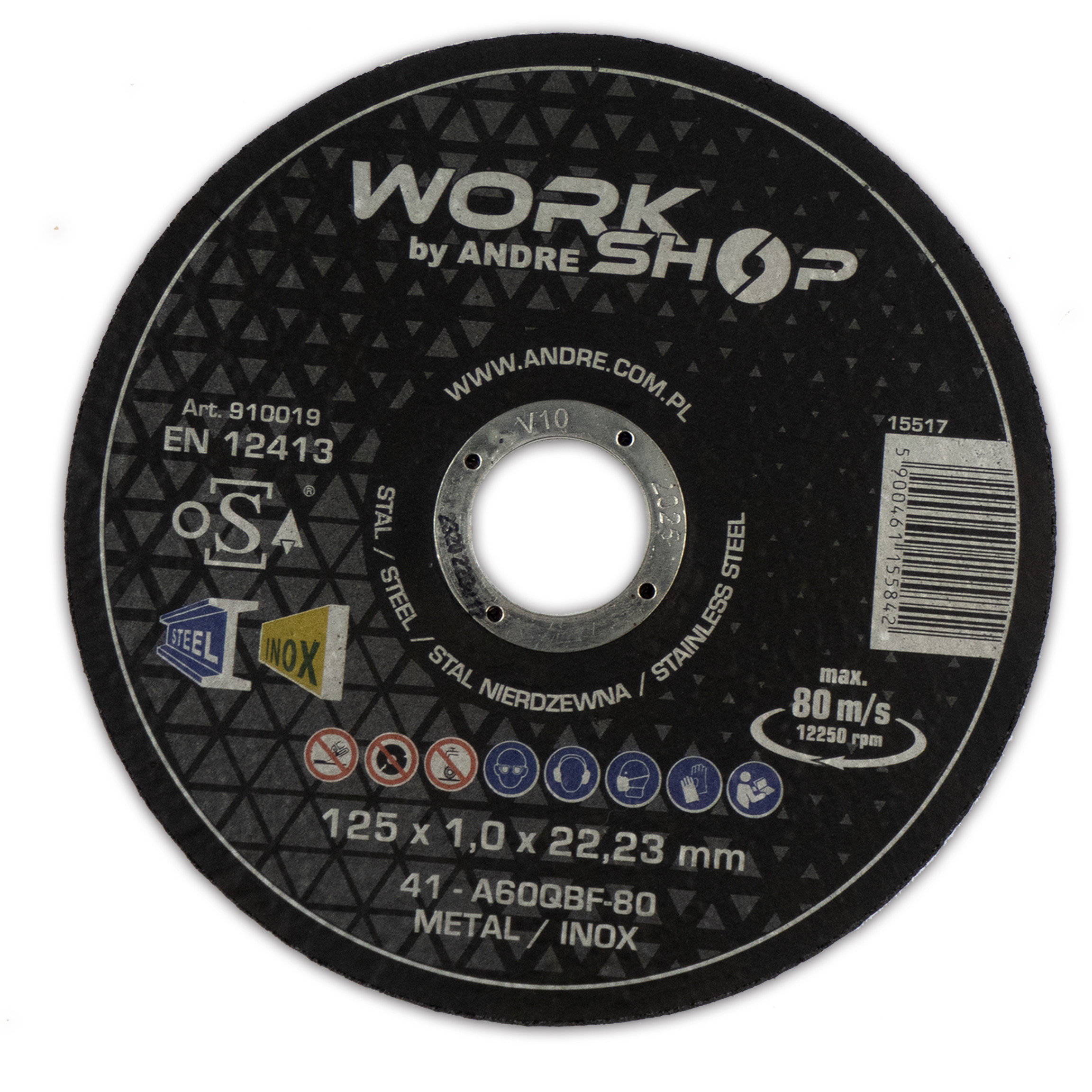 1x Tarcza Andre Workshop metal/inox 125×1.0x22.3